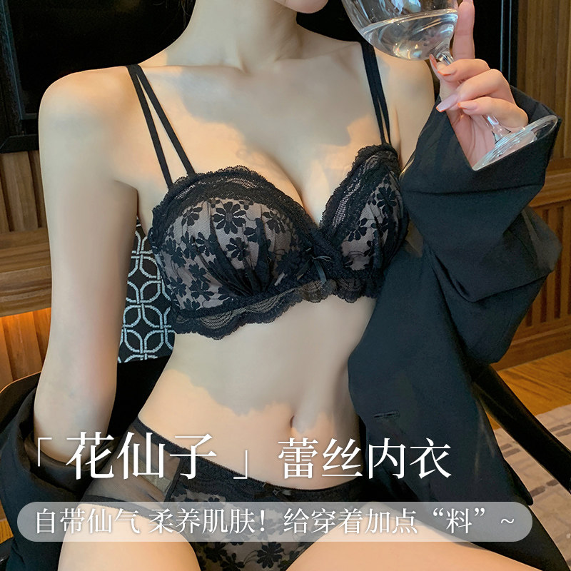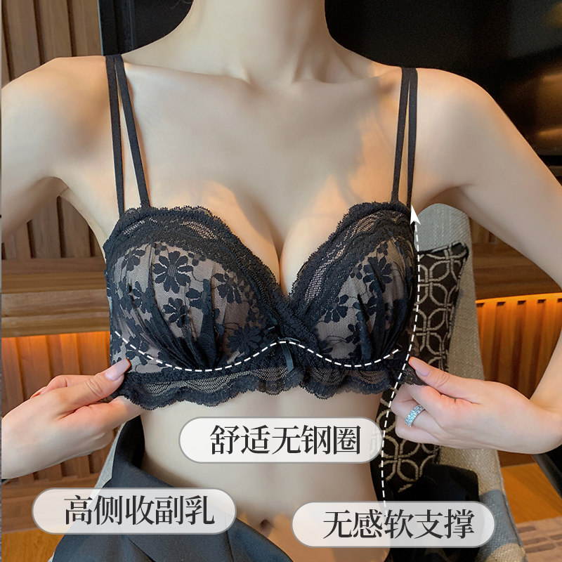 Brand small chest push-up underwear feminine lace bra no steel ring closed breast flat chest thickened bra set