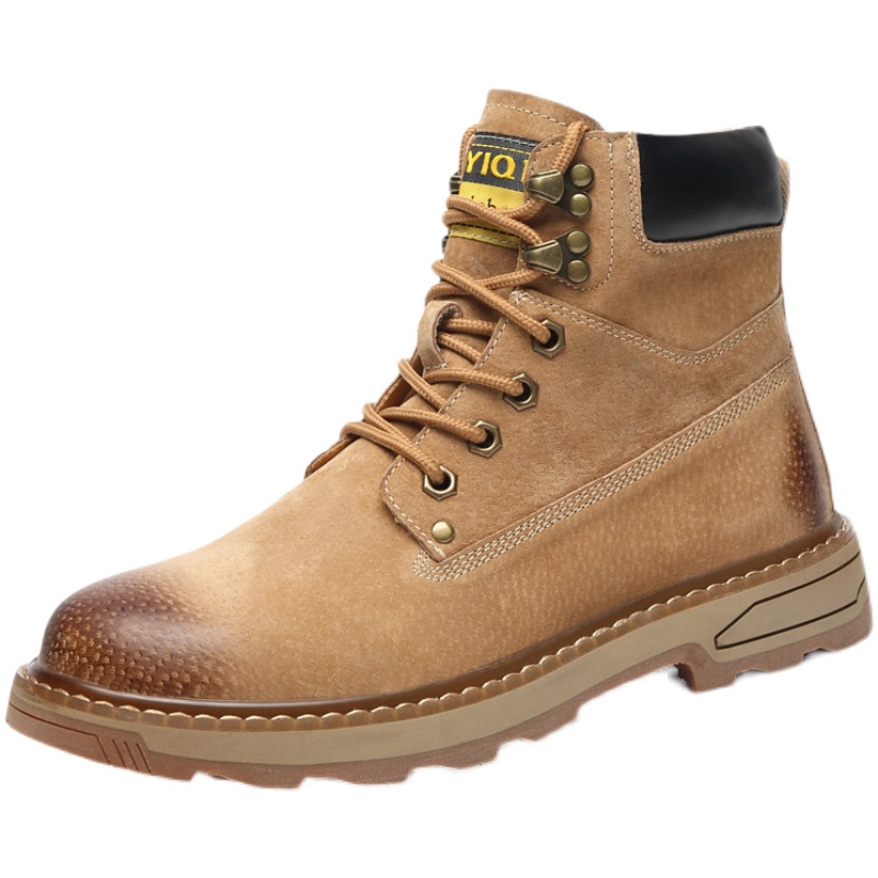 Martin boots men's leather British style tooling boots autumn and winter breathable non-slip tendon bottom plus velvet high-top rhubarb boots trendy