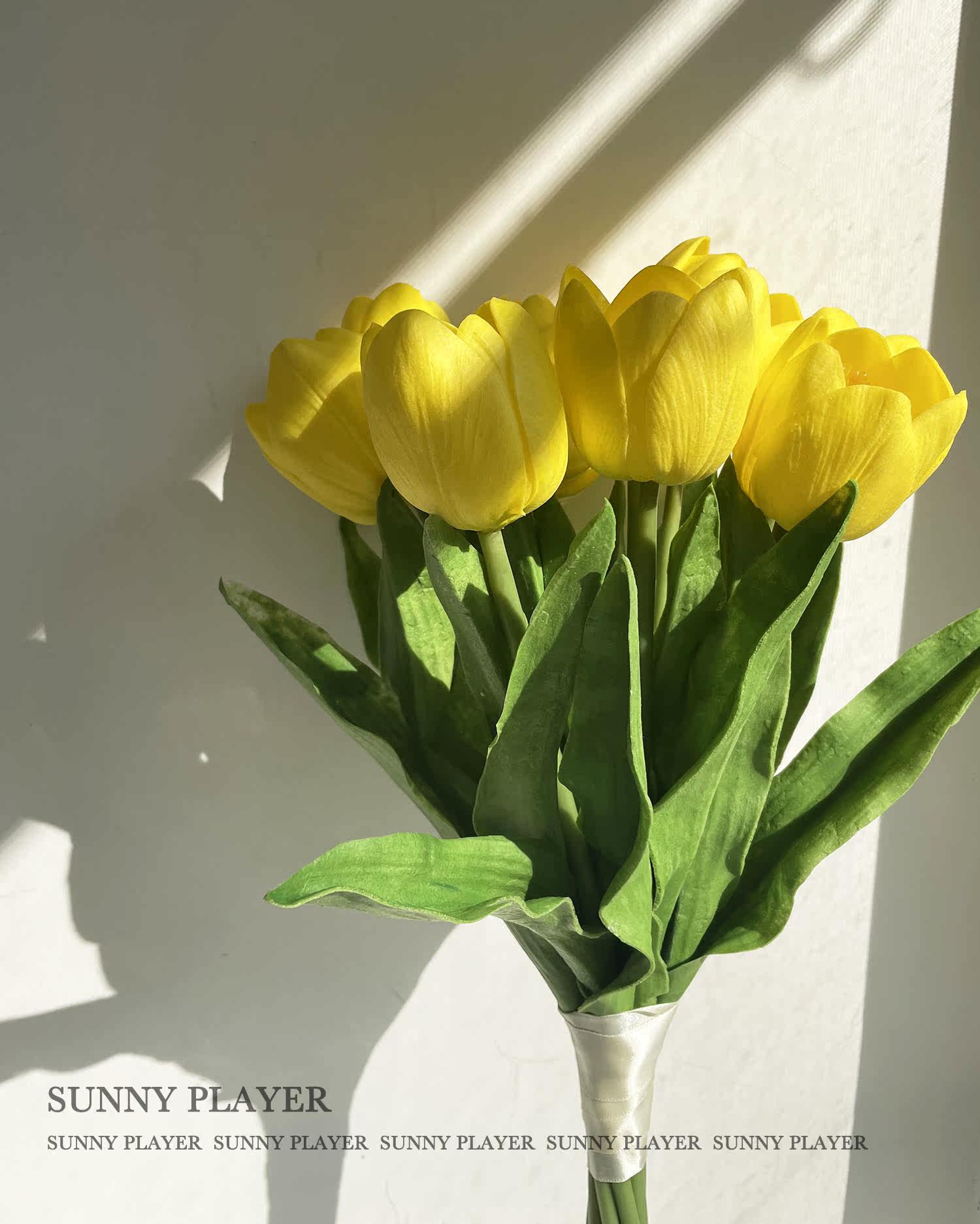 Tulip Wedding Bride's hand holding a flower collar certificate followed by a wedding with a small bouquet emulated flower wedding yarn photo prop yellow