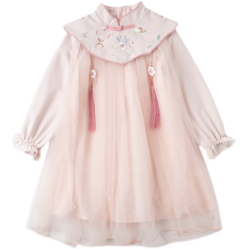 Ranran Hanfu Girls Costume 2021 Spring and Autumn Chinese Style New Skirt Cloud Shoulder Super Immortal Long Sleeve Children's Autumn Dress