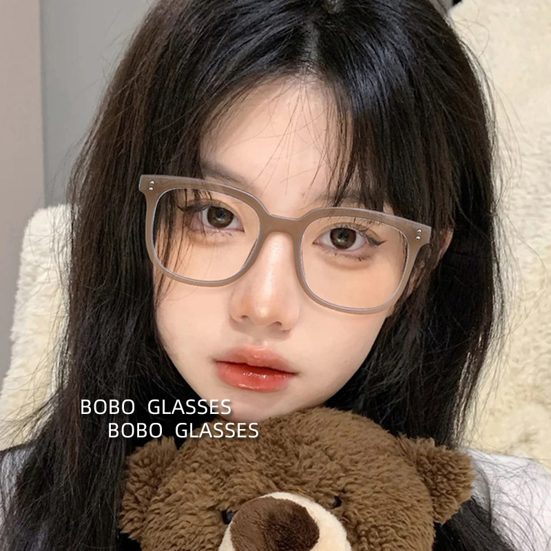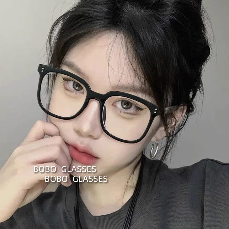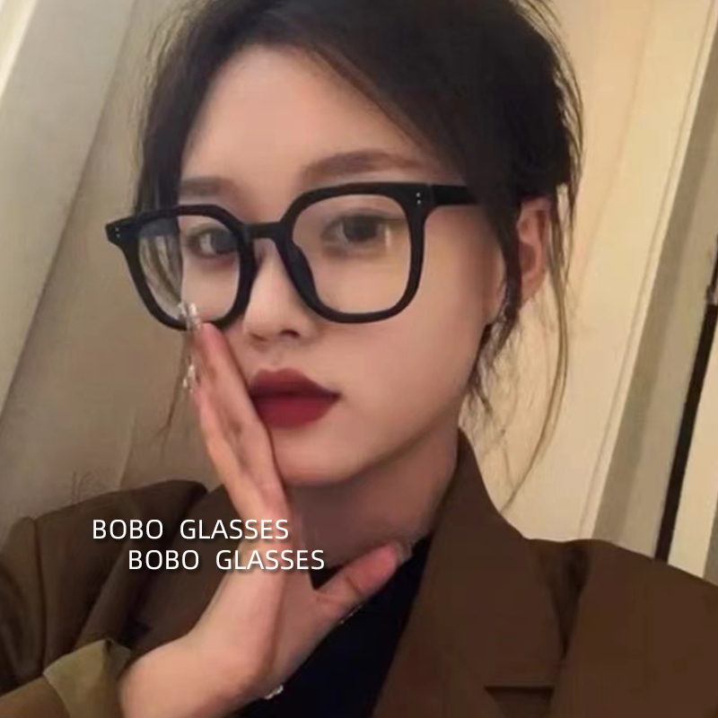Net red black frame plain glasses female Korean version of the trendy big face thin flat mirror myopia can be equipped with anti-blue light glasses