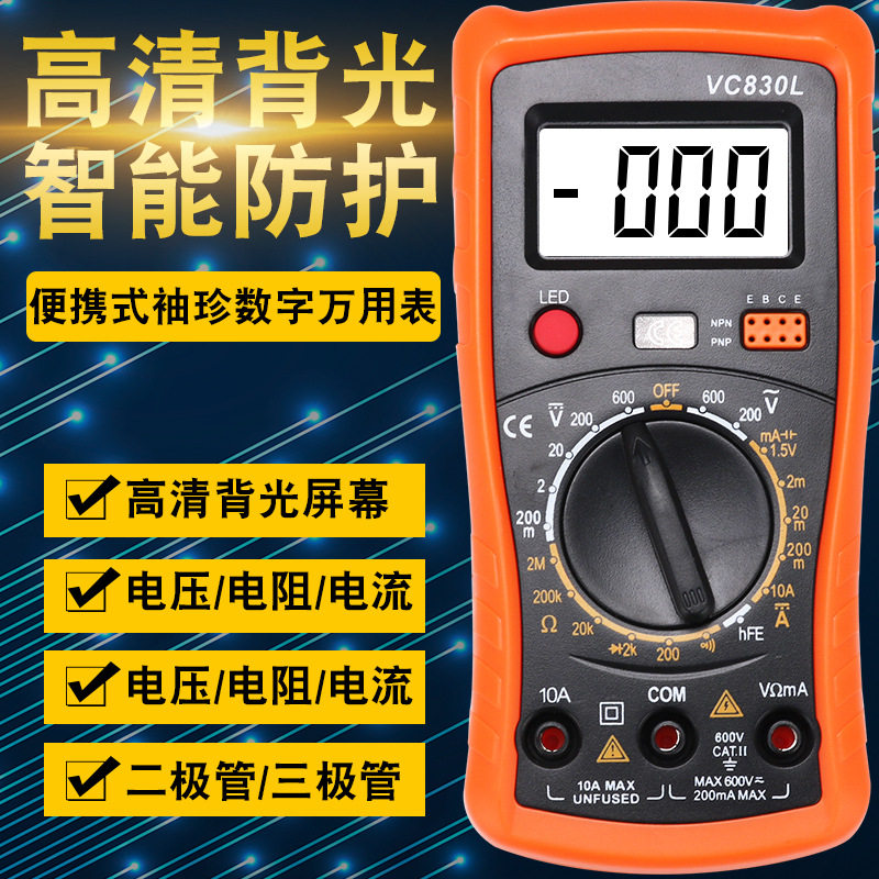 Mini A830L digital multi-meter portable high-precision digital display universal watch strap backlight electrician multi-function instrument