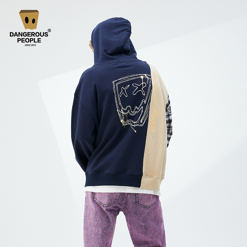 Dangerouspeople Xue Zhiqian dsp paper bag man hoodie retro personality Street men and women stitching sweater