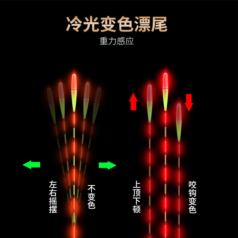 High-sensitivity gravity-sensing electronic float bold tail eye-catching bite hook discoloration luminous pretty super bright night fishing nano fish float