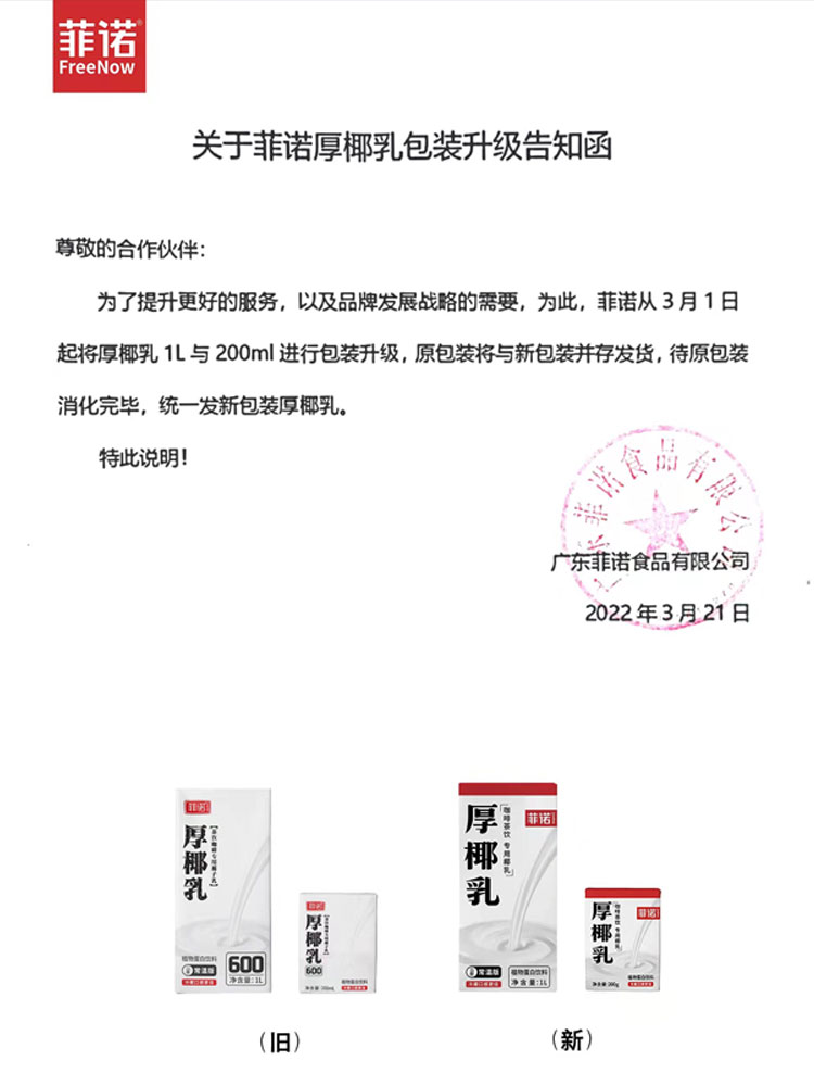 Fino thick coconut milk 1L household coconut milk coffee partner raw coconut latte sago milk tea shop coconut milk baking ingredients