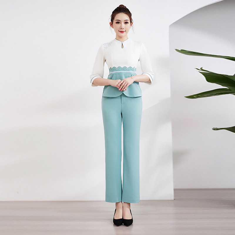Tang Yong 2022 Spring and summer new footbath work clothes female football therapy health center massage technician coloured suit sleeves