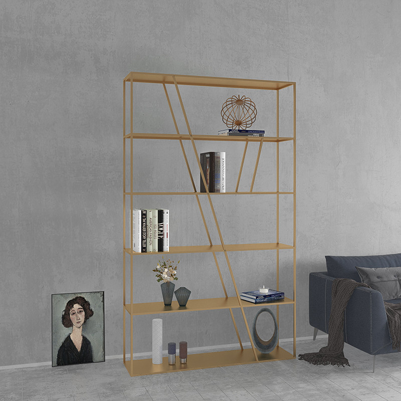 Modern minimalist art shelf wrought iron floor-to-ceiling installation-free bookshelf storage shelf office partition light luxury ins - Taobao