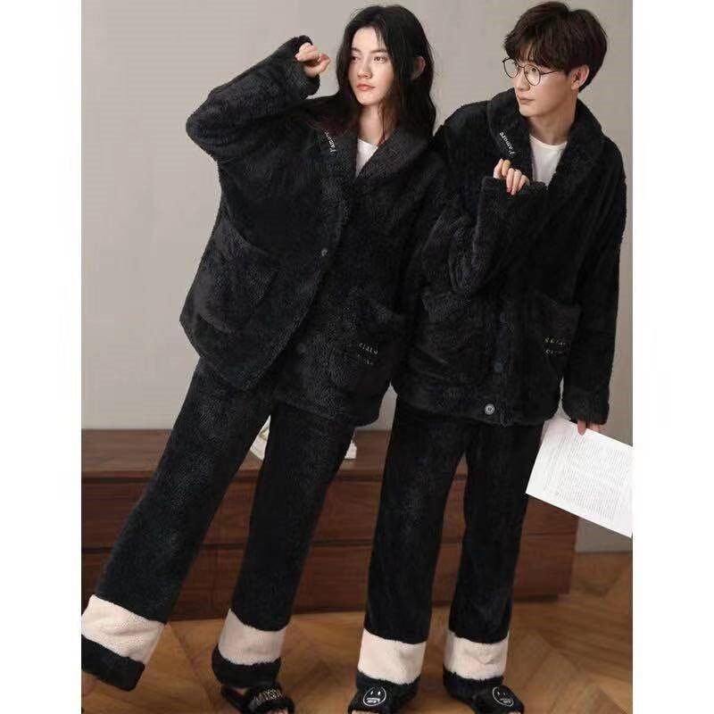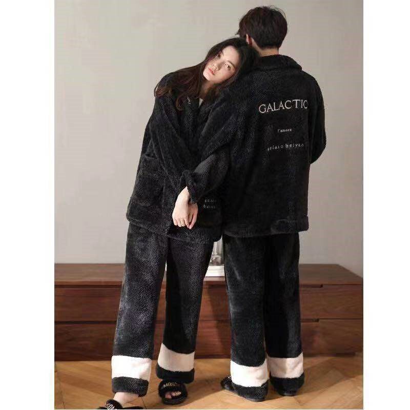 2021 Winter New Couple Sleepwear Women's Flannel Suede Suit Can Be Outworn Casual Home Suit Coral Suede Two Sets