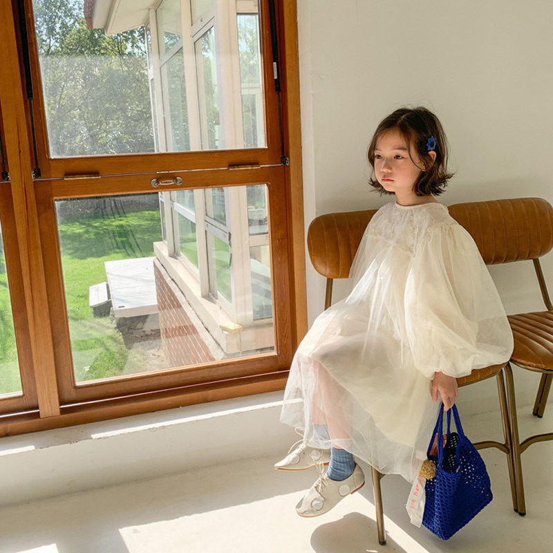 Children's gauze dress dress summer girls fairy princess net gauze skirt Korean version baby lantern sleeve dress birthday skirt