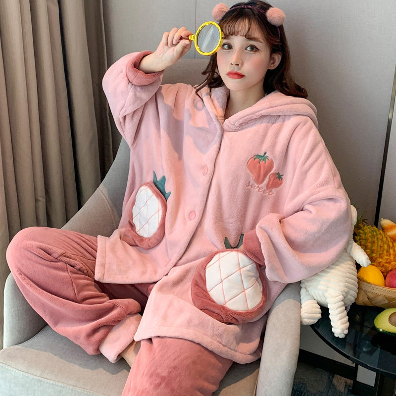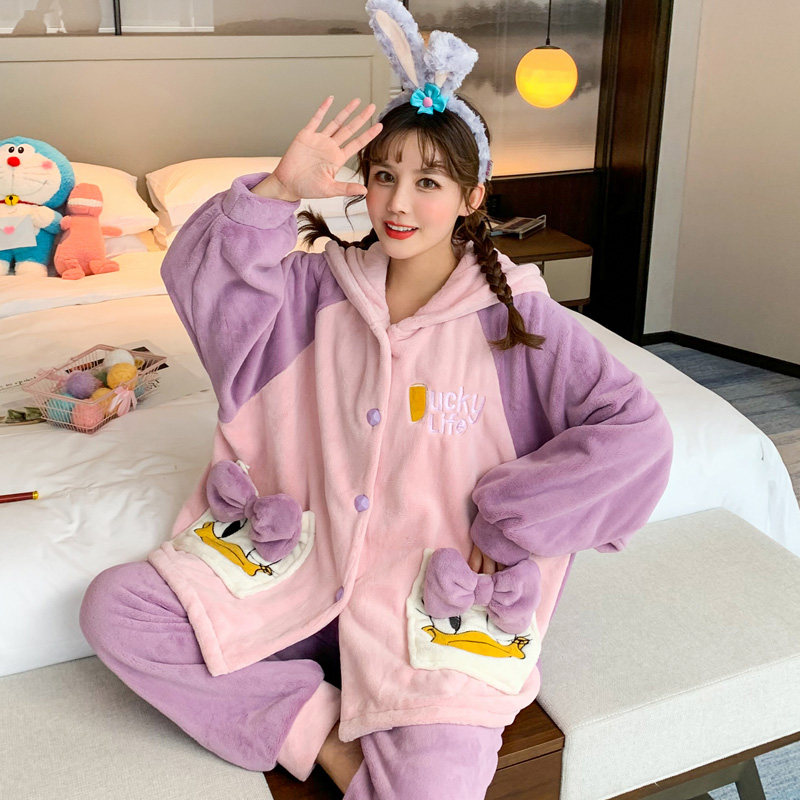 Autumn and winter flannel pajamas female cartoon plus fertilizer plus size fat MM200 catties thick coral fleece home service suit
