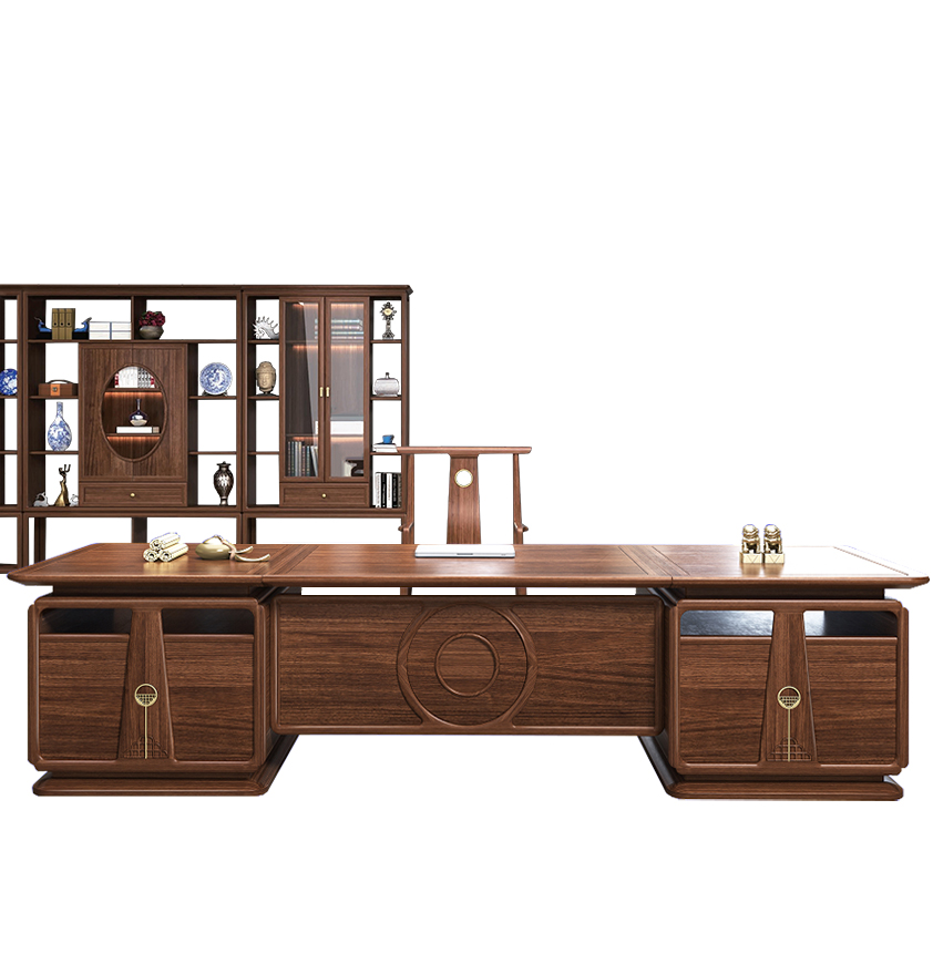 New Chinese Style Desk Solid Wood Boss Desk Executive Desk Modern Simple President Office Black Gold Wood Furniture Customization