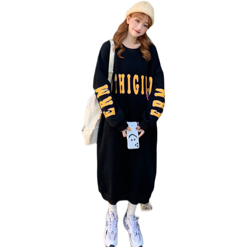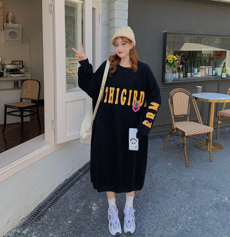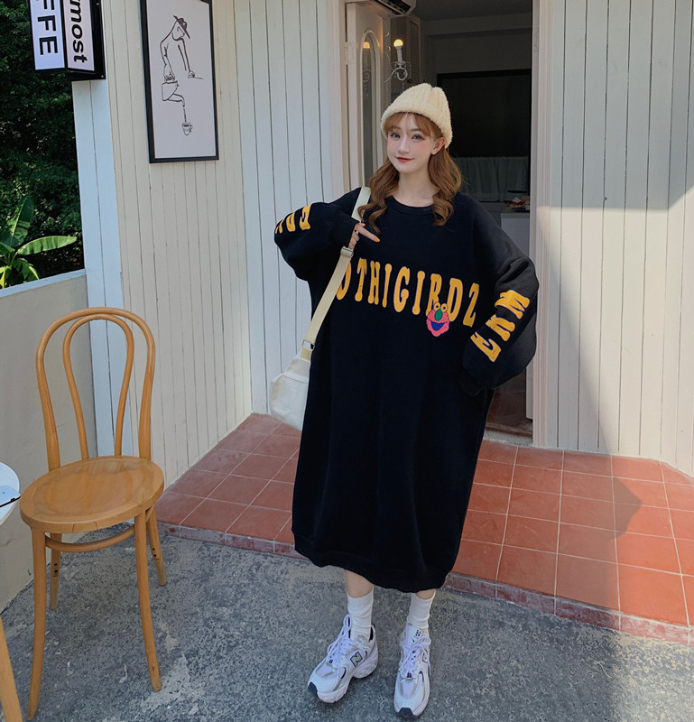 2021 New large - yard pregnant woman in loose middle - long plus thicker lamb jacket sweater overhead woman