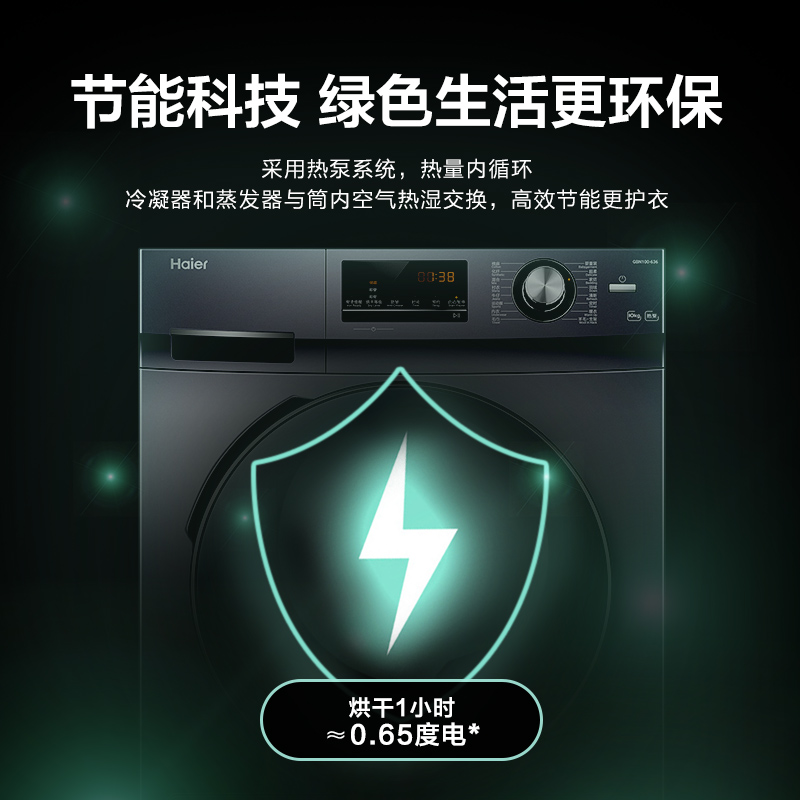 Haier heat pump dryer washing and drying set 10 kg household fully automatic clothes drying drum GBN-100-636