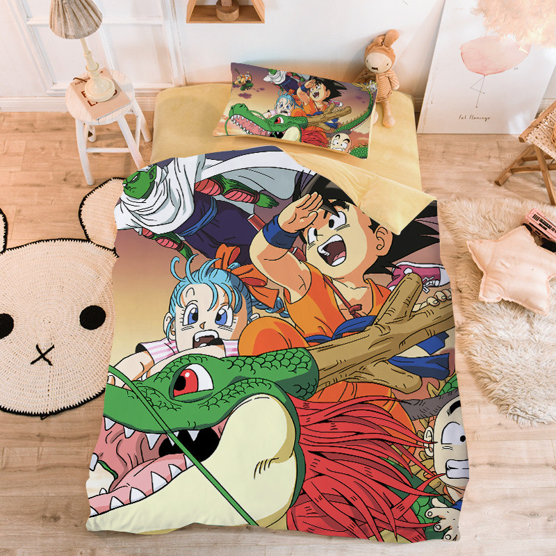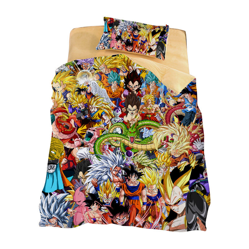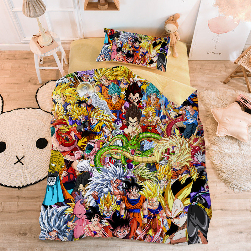 Children's Cartoon Dragon Ball Three-Piece Bed Set 1 2m Bed Boy Bedroom Anime Goku Quilt Cover Pillowcase Four-Piece Set - Taobao