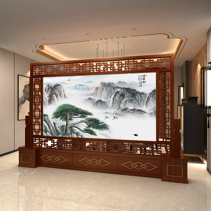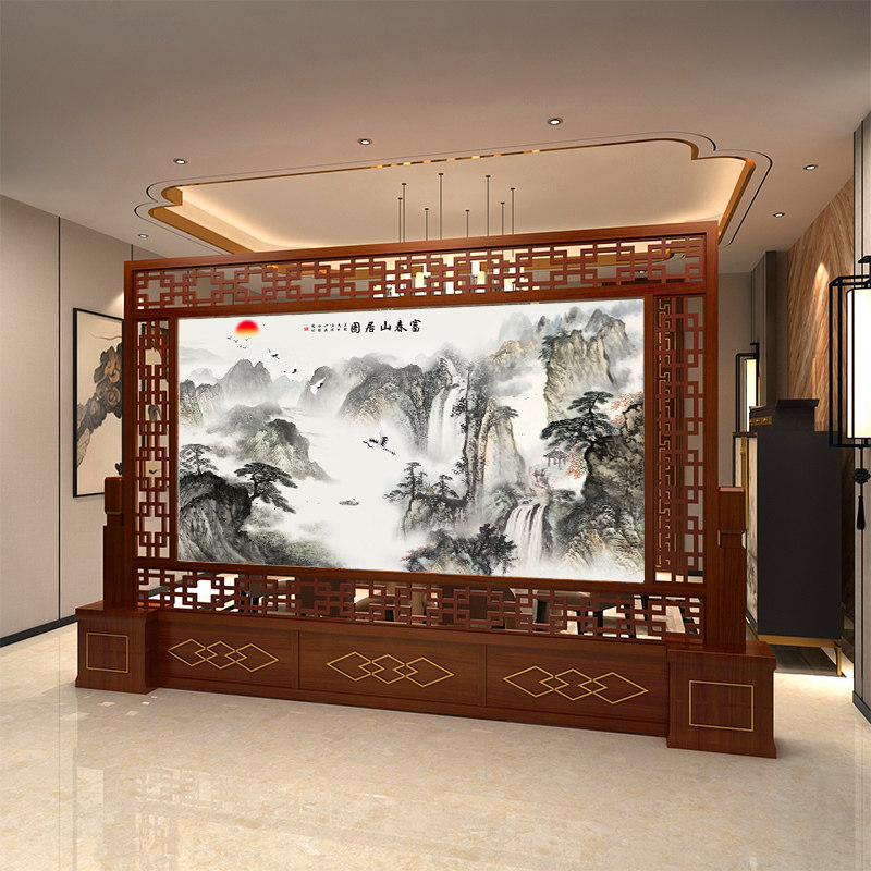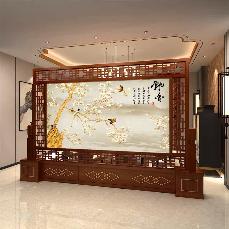 New Chinese solid wood screen partition Living room Xuanguan Hall Unit Office Division Hotel Classical log seat screen Customized