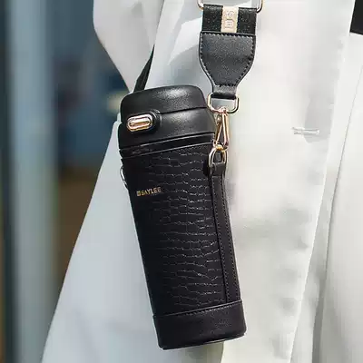 (Pearl White 500ml) double drink cover leather cup sleeve wide shoulder baby bag (Yaoshi black 500ml) double drink cover leather cup cover wide shoulder baby bag (pearl powder 500ml)