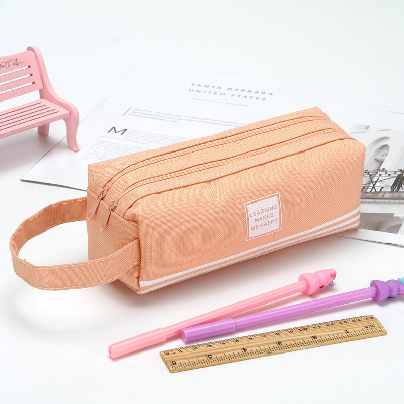 Pencil Case Elementary Students Children Personality Stationery Bags Brief Teenage Girl Hearts Canvas Pen Bag Large Capacity Korean Version