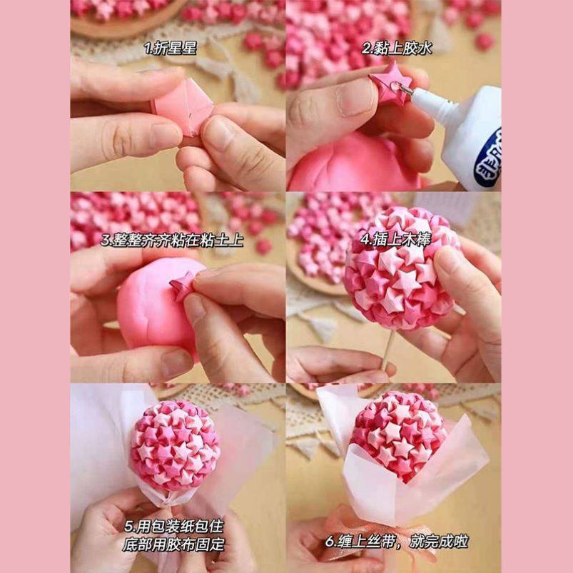 K53-pink star origami as long as star origami O52-pink star origami bouquet material package (can A41-pink star origami bouquet material package (can N58-pink star)