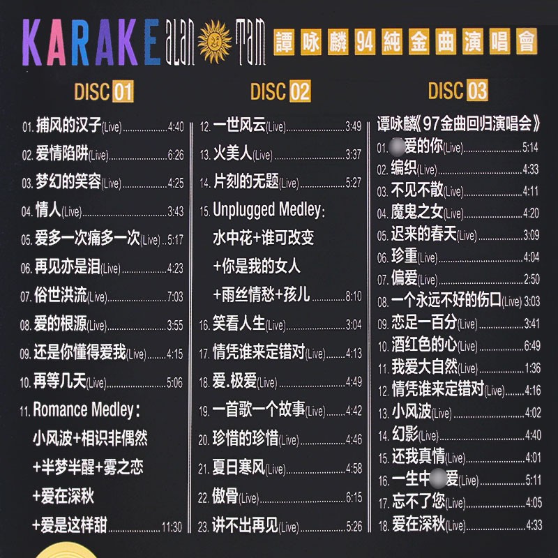 Alan Tam CD Record 94 Golden Melody 97 Comeback Concert Genuine Car 3CD Song Disc - Taobao