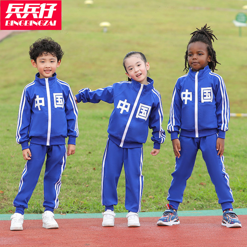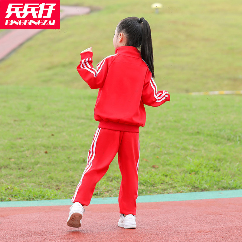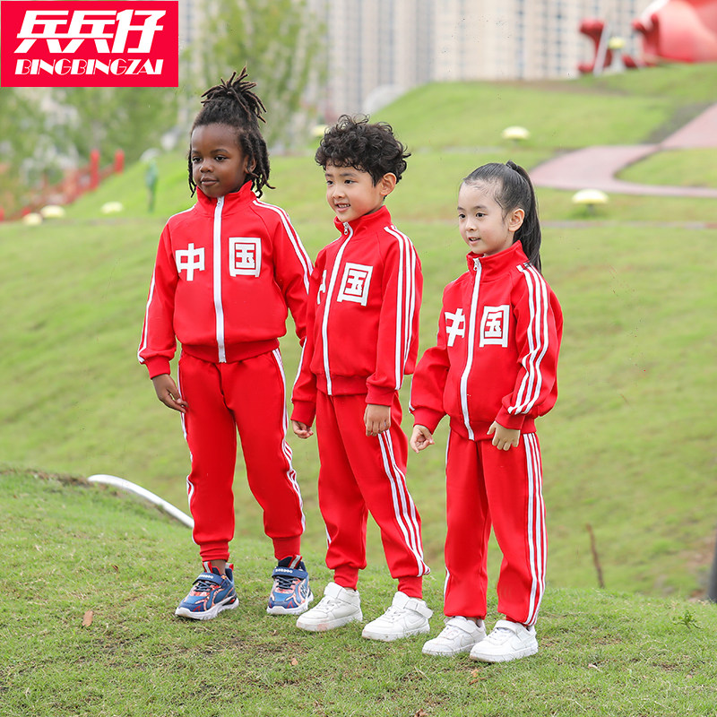 Kindergarten uniforms spring and autumn primary school uniforms suits children's class uniforms Chinese characters three-piece red sportswear