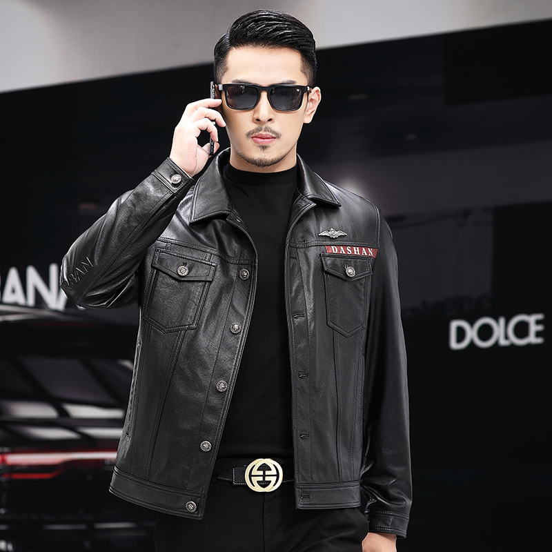 Spring and Autumn New Haining Genuine Leather Jacket Men's Short Lapel Top Layer Pure Leather Jacket Men's Trend Motorcycle Jacket