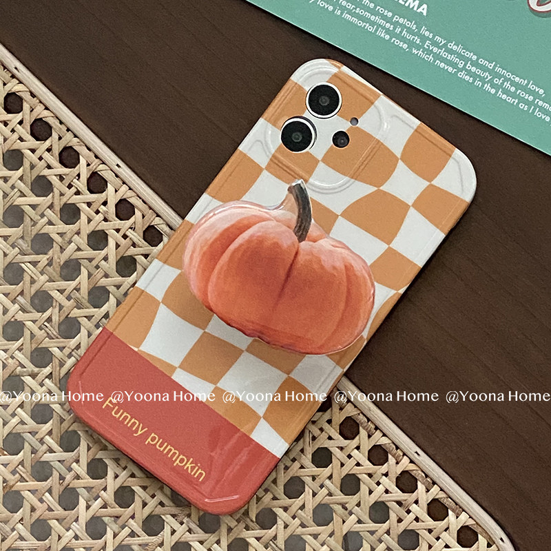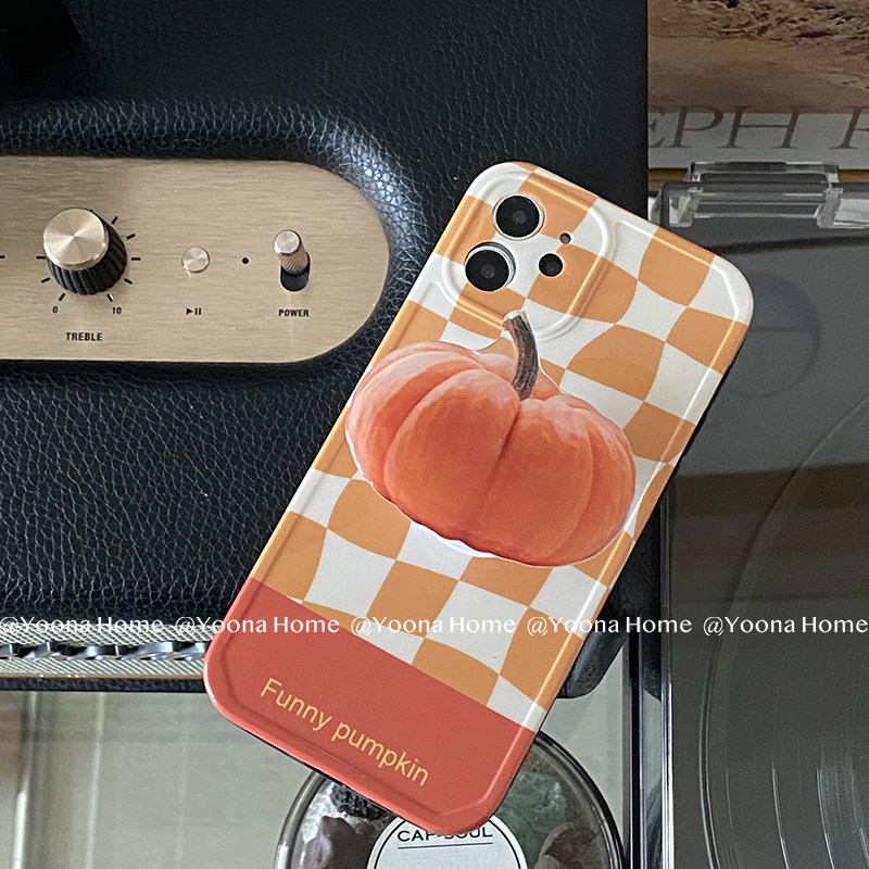 Yoona Home Pumpkin Hit the Chessboard Grid Apply iPhone12PRO max Apple 11 Phone to protect shell bracket