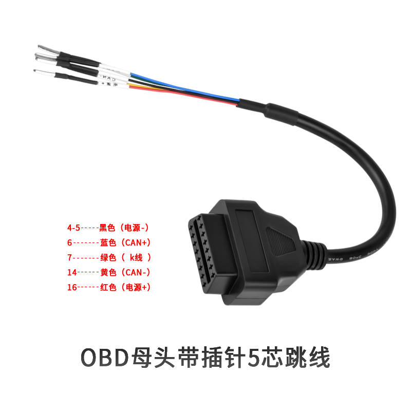 OBD female 5-core jumper OBD male 16-pin jumper leads out OBD female head without terminals one by one leads out quick-plug female jumper quick-plug male jumper quick-plug male-female battery clip broken wire