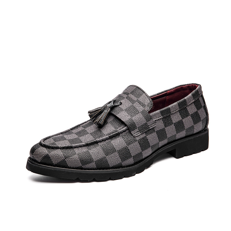 Pointed-toe tassel fashion leather shoes men's casual personality one-step Peas shoes British retro plaid men's shoes