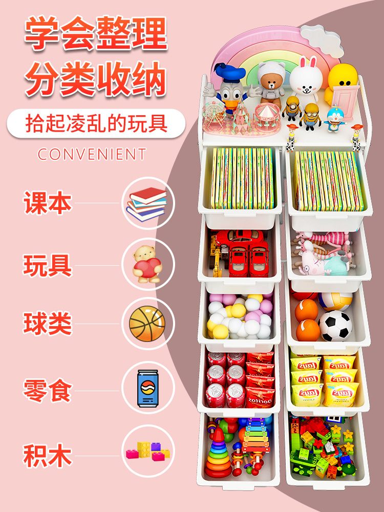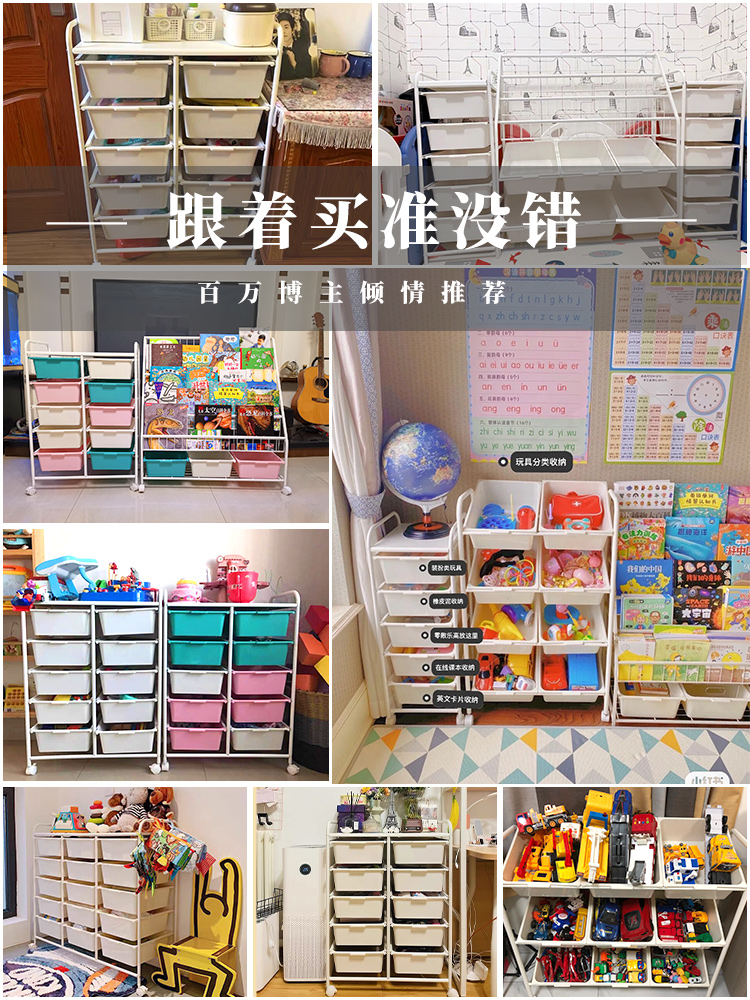 Children's toy storage shelves Baby painted book shelves Large-capacity multilayer mobile storage cabinets Home floor shelves-Taobao