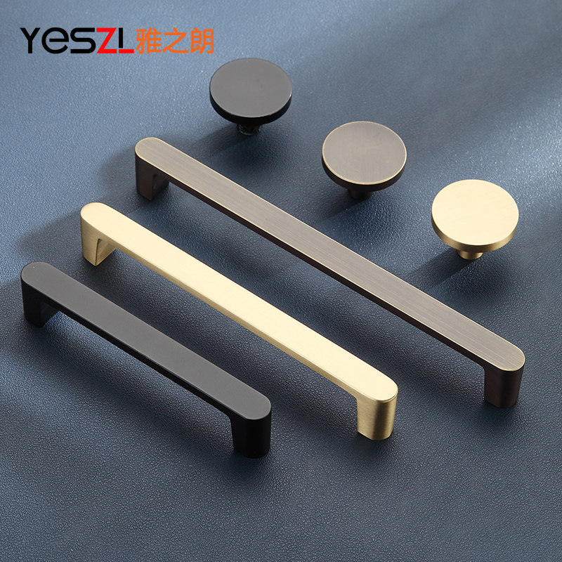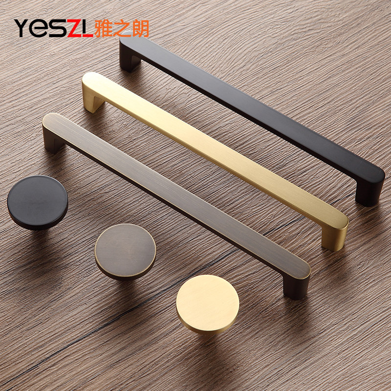 All copper cabinet door handle light luxury modern minimalist black pure copper drawer cabinet door handle brass wardrobe overall cabinet