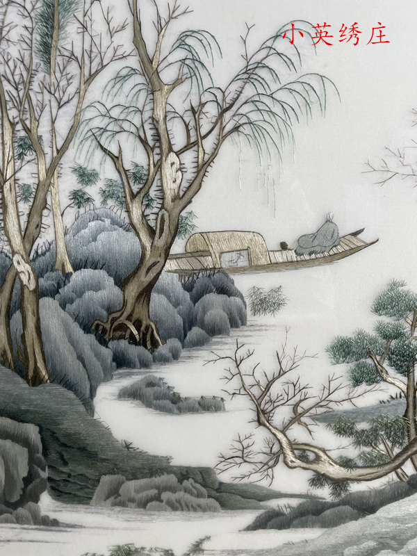 Pure handmade new boutique Suzhou embroidery painting Su embroidery finished product hanging painting Xuanguan decoration painting 4060 water ink landscape