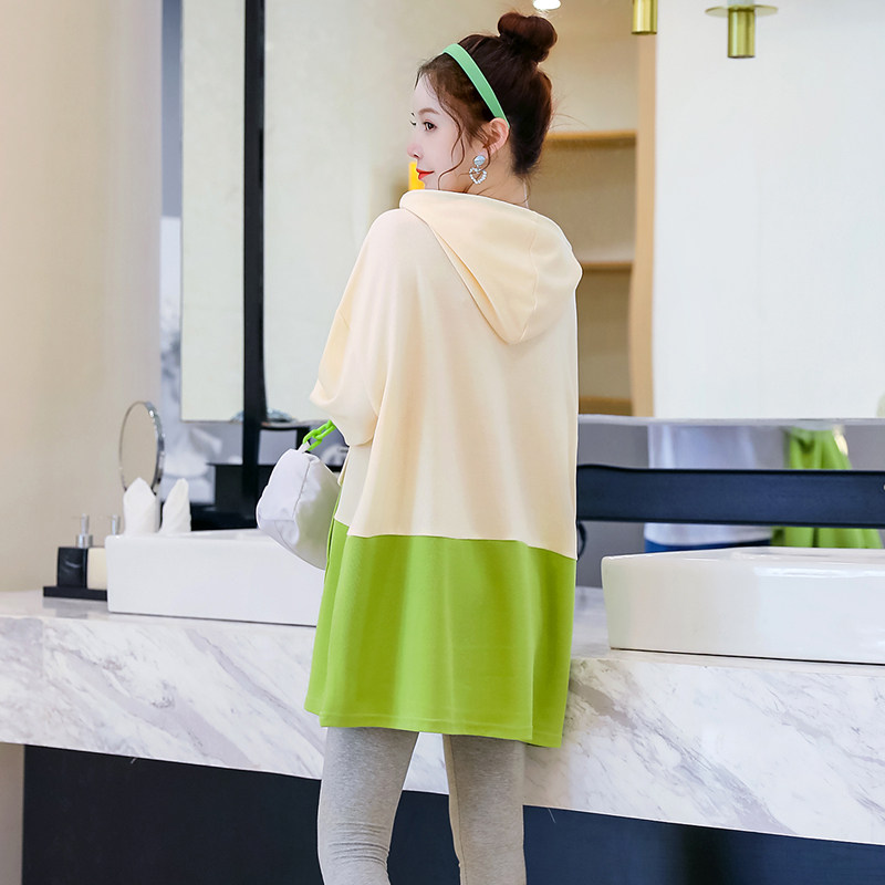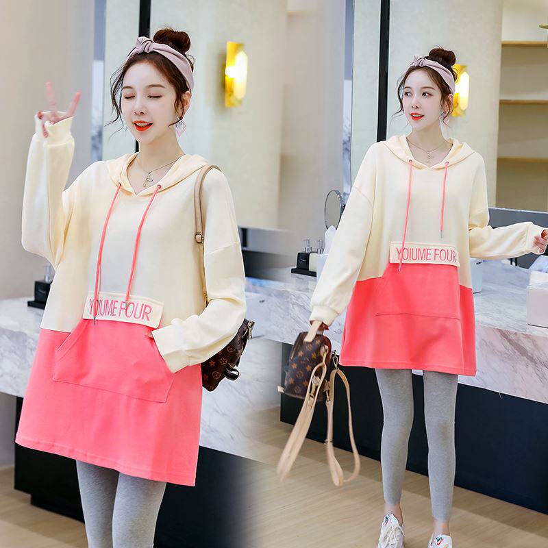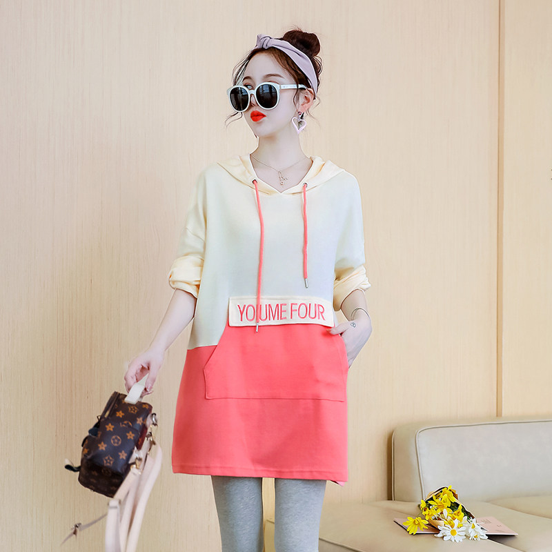 Pregnant women's spring and autumn fashion new medium-length version of the trendy hot mom Western style loose stitching top cover the belly does not show the pregnant skirt