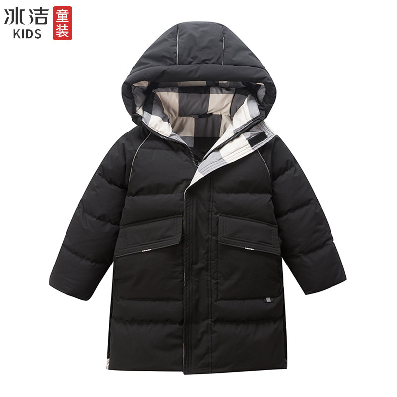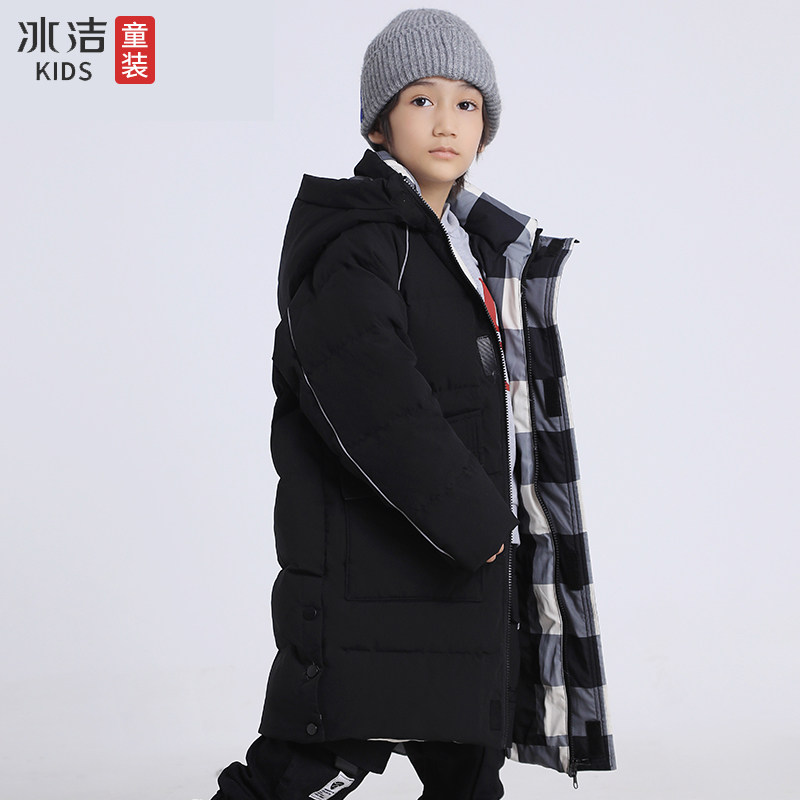 Ice Kit 2021 new boy Lieven hat down jacket in long version CUHK Tong Hat Thickened Pure Color 100 Hitch Coat Winter
