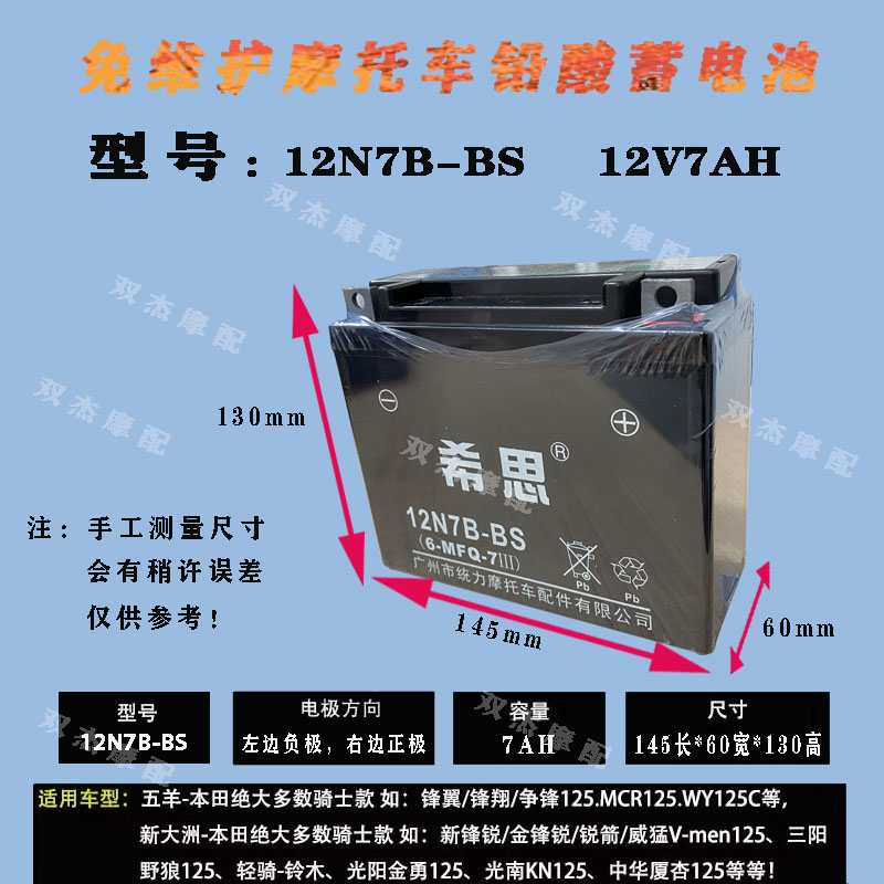 Heath HIS locomotive 12N7B accumulator 12V7ah dry battery new continent WY frontal wing 125 thin