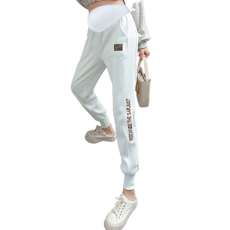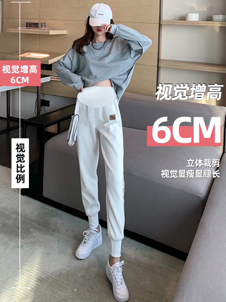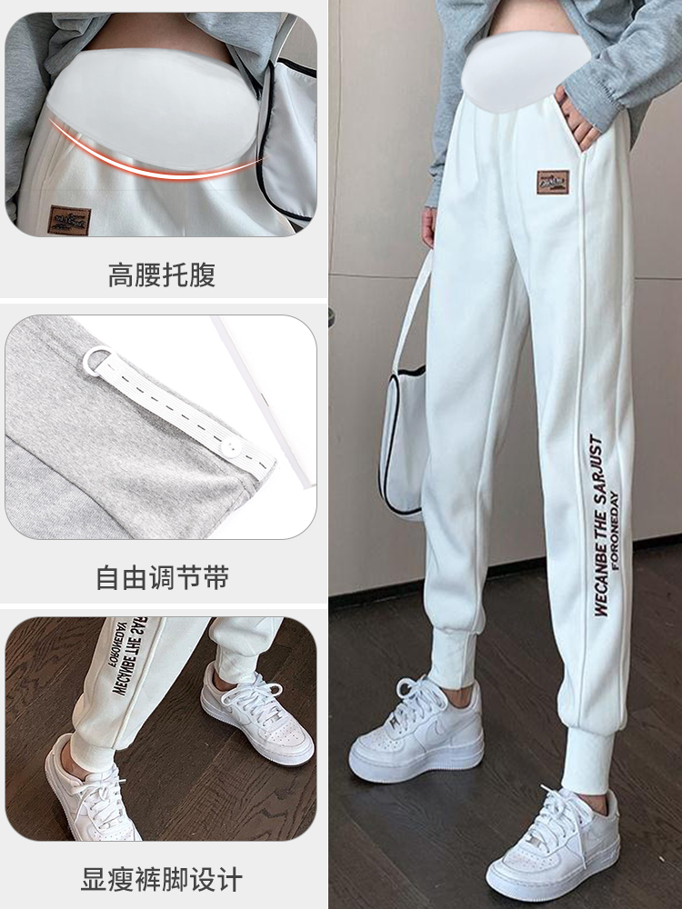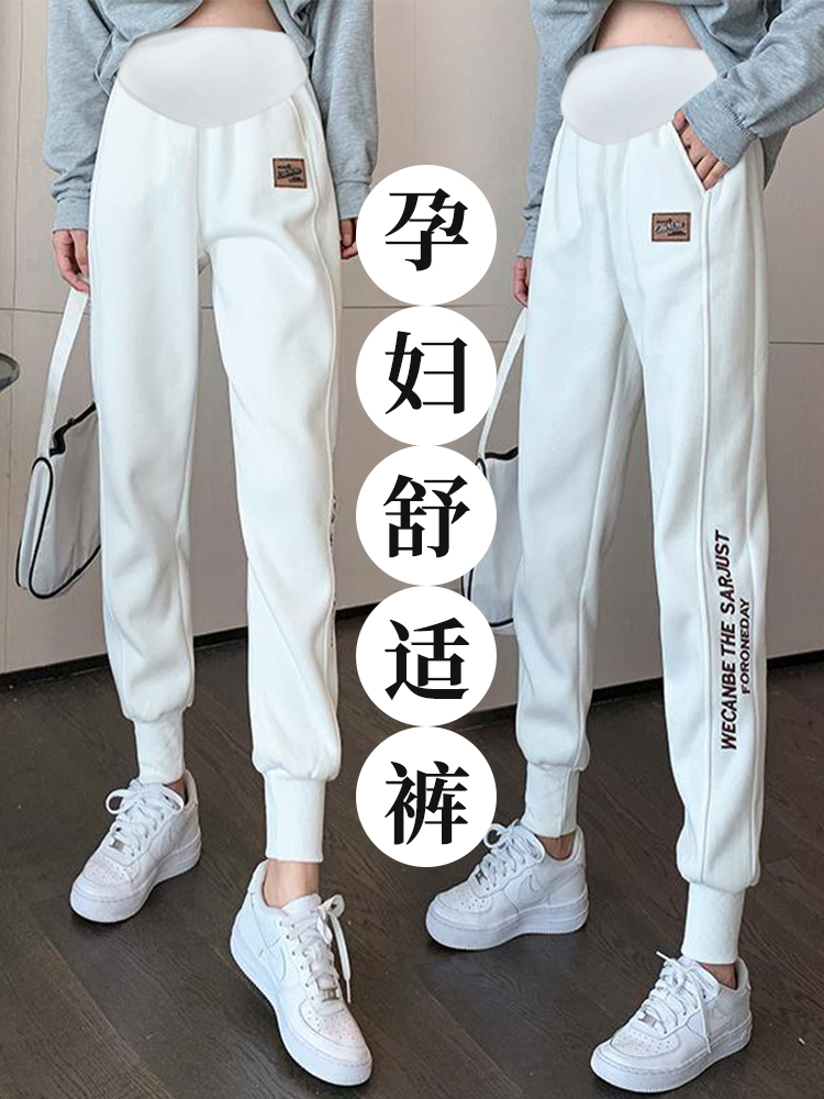 Pregnant women's sports pants spring and autumn plus velvet white beam feet wide-leg pants outer wear winter high waist support belly casual thick cotton pants autumn