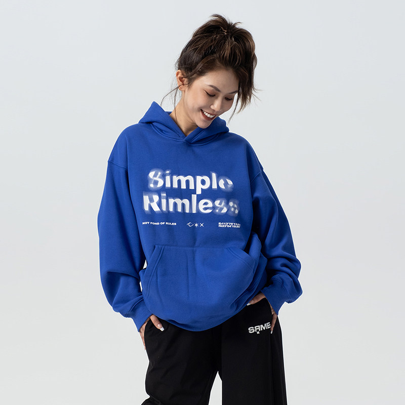 SRME American retro fuzzy letters plus velvet jacket autumn and winter original heavy men's and women's casual long-sleeved hooded sweater