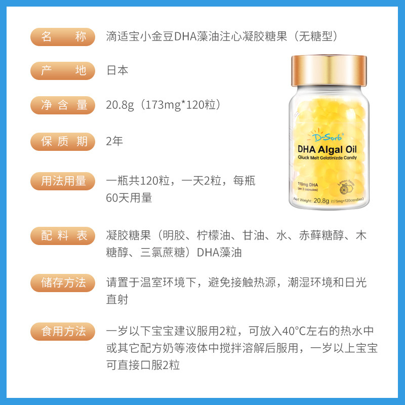 Dörb Drip Palatable Small Golden Bean Dha Capsule Baby Smart Baby Children Eye Brain Vision Infant Algae Oil