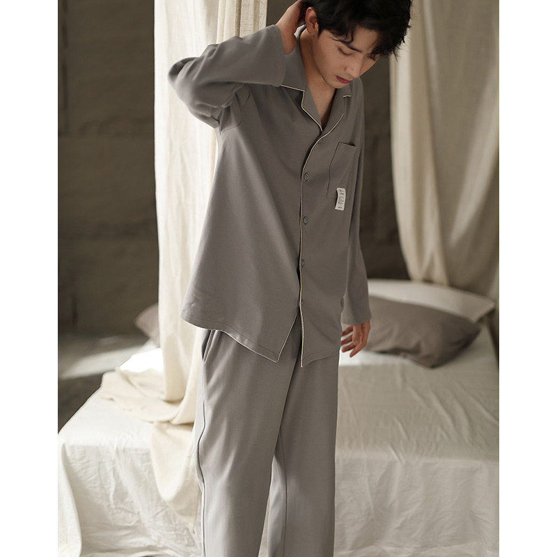 Men's sleepwear spring autumn season pure cotton long sleeve Home clothes All cotton Leisure Korean version can be worn out of autumn and winter style two-piece suit