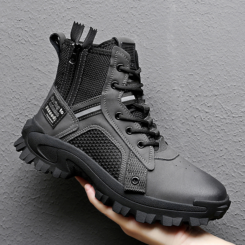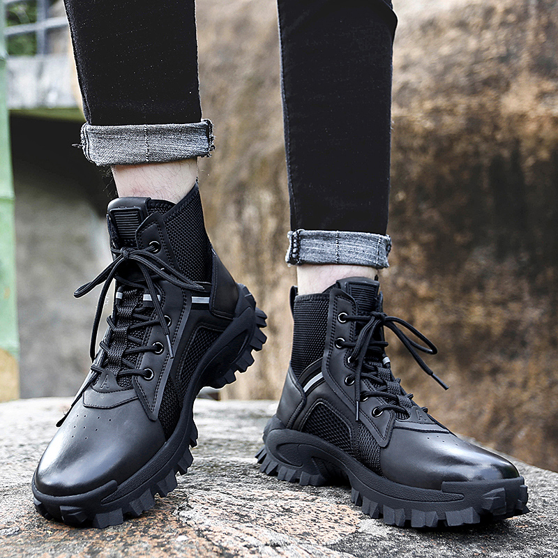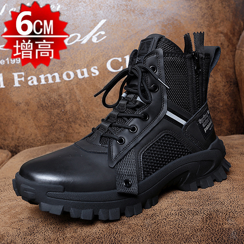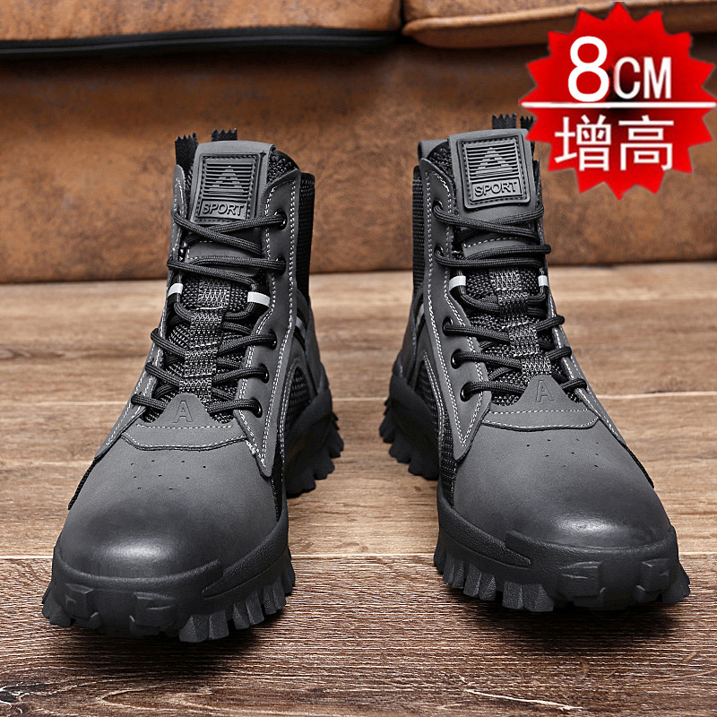 Autumn hiking Martin boots men's invisible inner heightening men's shoes 10cm8cm leather hiking shoes black sneakers
