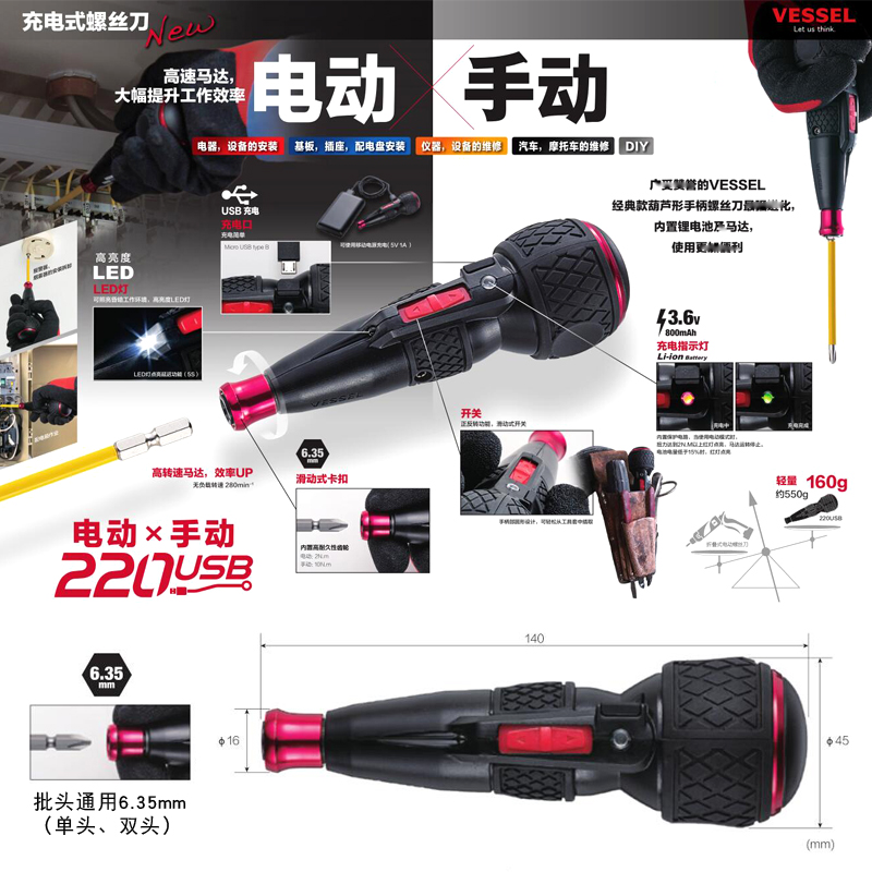VESSEL Weiwei Japan Imports Electric screw screwdrivers Manual Dual-purpose rechargeable screw Screwdriver Lithium electric Mini Screwdriver