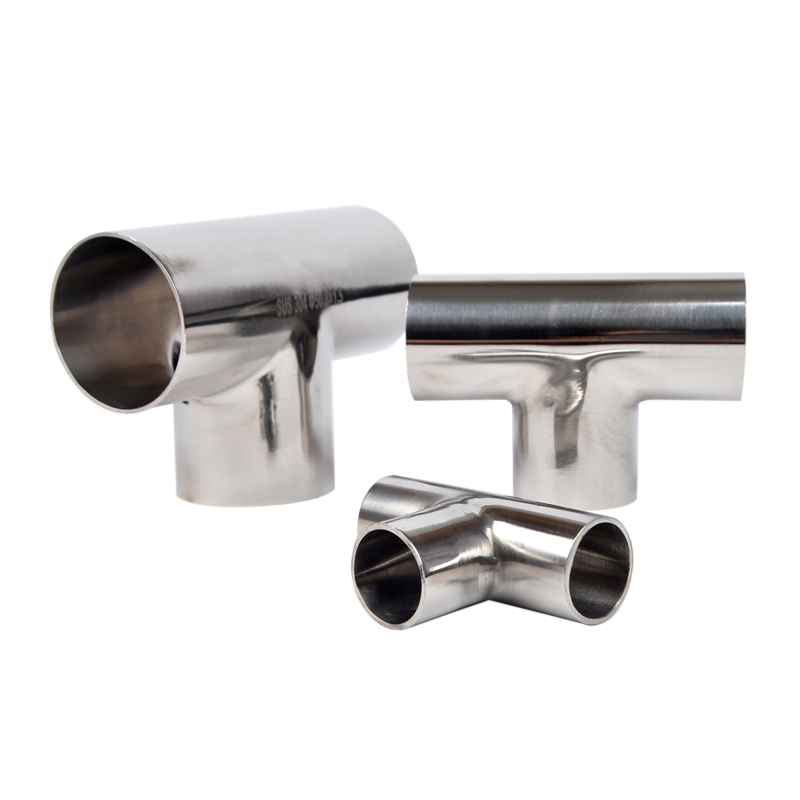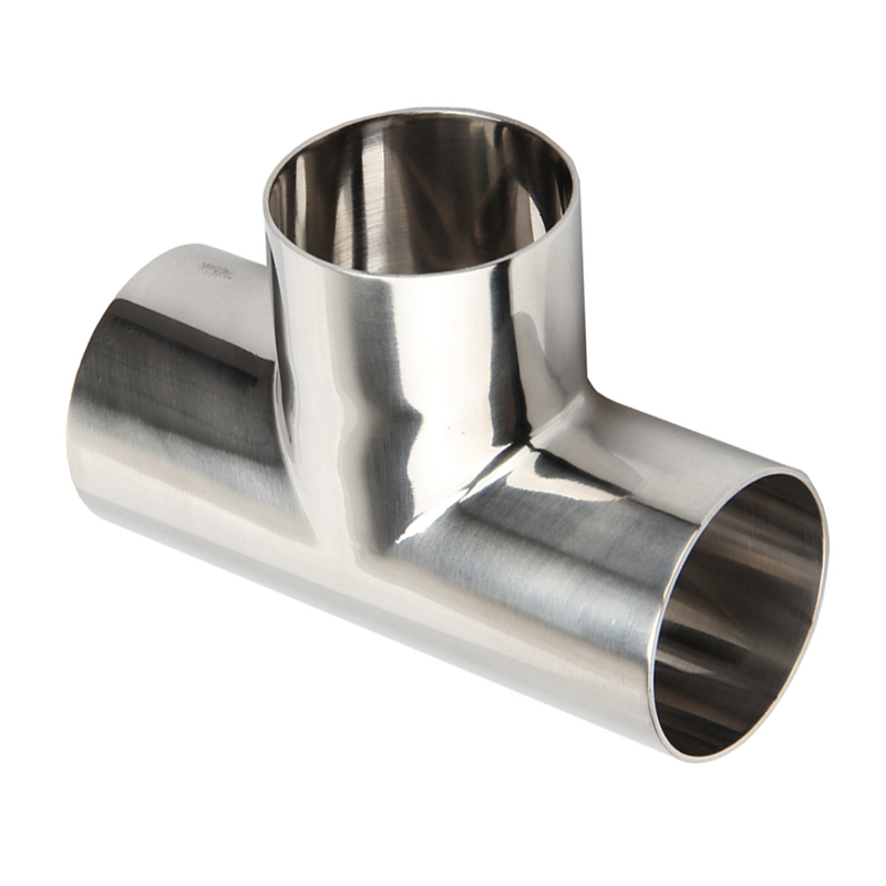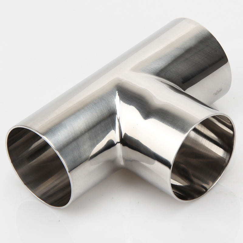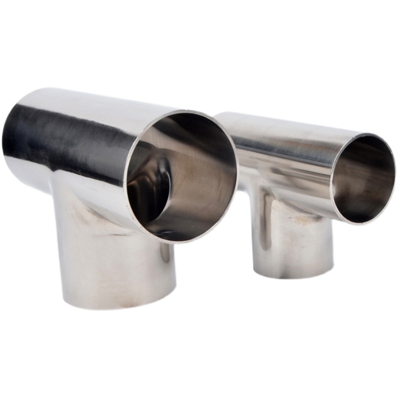 Sanitary welded tee 304 stainless steel equal diameter T-pipe joint inside and outside polished mirror pipe fittings