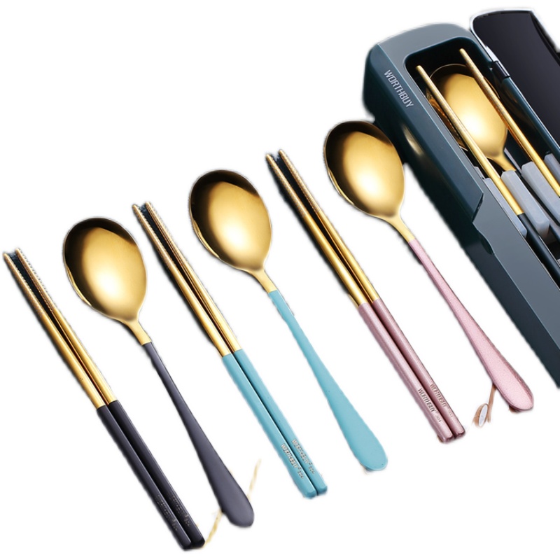 Japan MUJIΕ304 stainless steel chopsticks spoon tableware single pack portable takeaway three-piece student