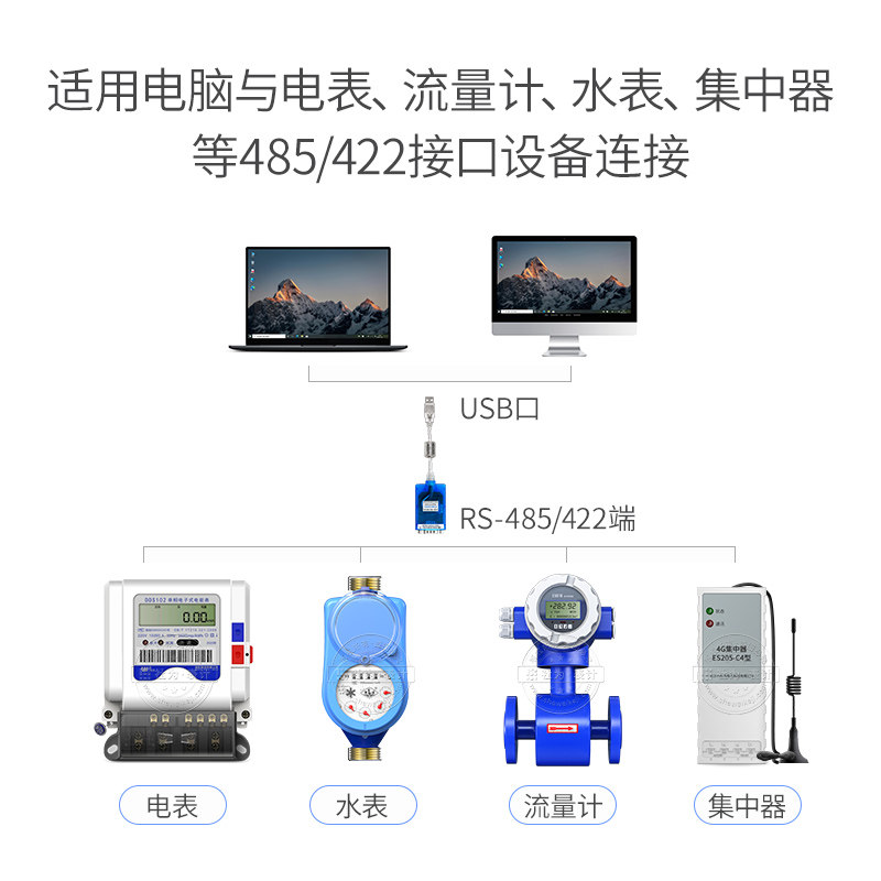 USB transfer RS-485 422 conversion line applicable computer connected with hydropower meter flow meter 485 connector device