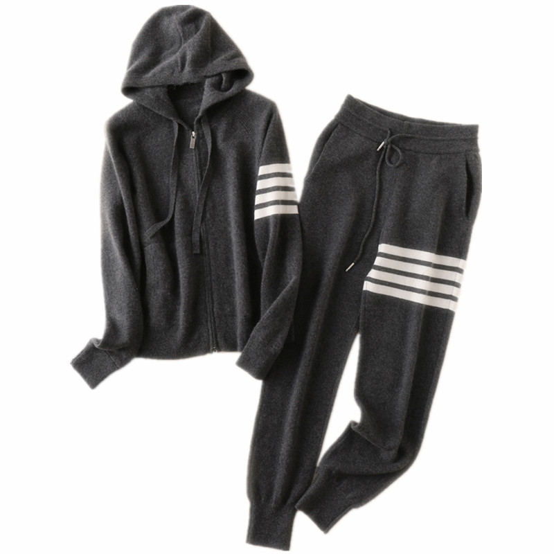Casual Sports Cashmere Suit Woman Two Sets Autumn Winter Clothing Wool Knit Sweatshirt With Cap Cardiovert Easy TB Coat