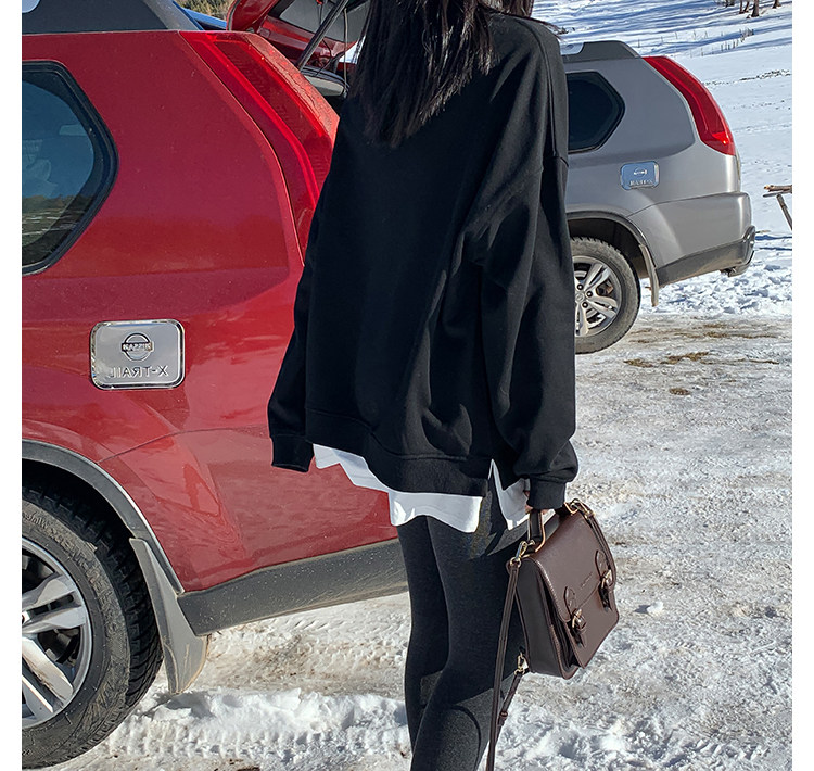Fake Two Autumn Winter New Pregnancy Woman Bottling Moms Fashion plus Velvet Thickened Loose Medium Long Version Long Sleeve Pregnant Woman