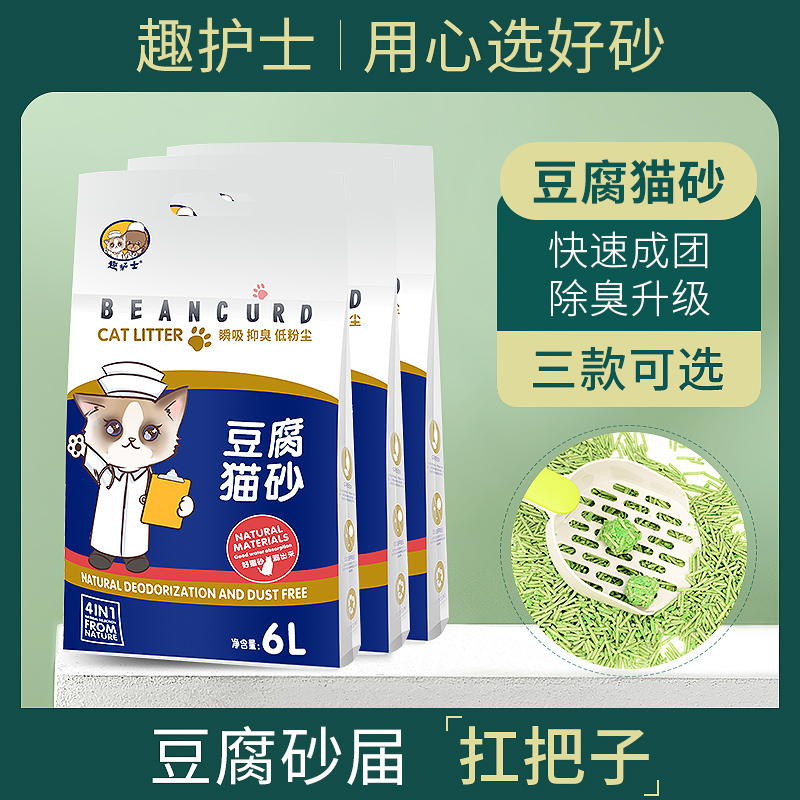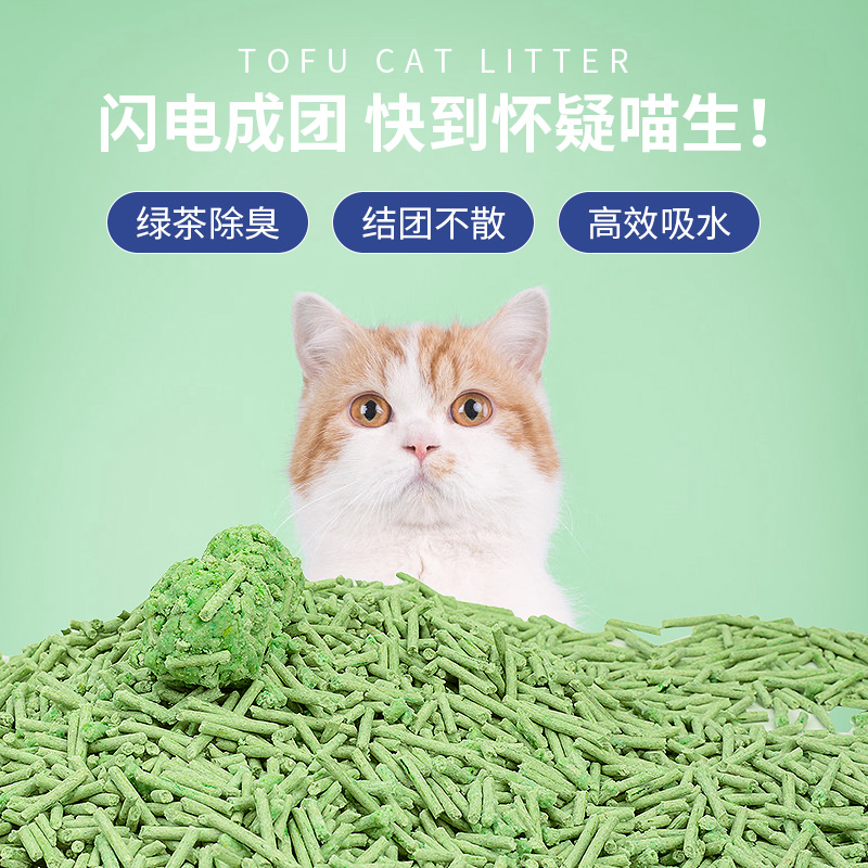 Fun nurse green tea tofu cat litter is not pungent deodorant dust-free cat litter bentonite cat litter 10 kg 4 bags