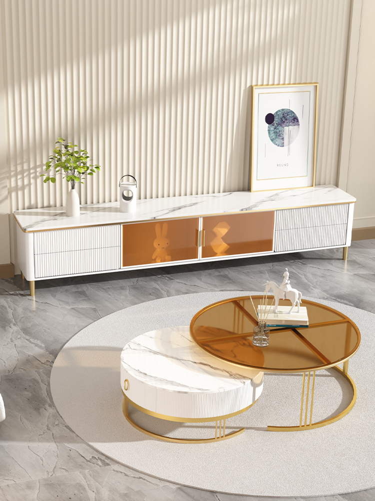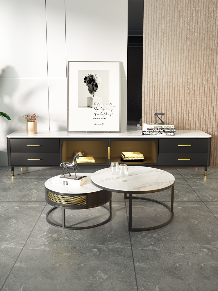 Italian minimalist slate TV cabinet home living room small apartment modern light luxury new coffee table TV cabinet combination