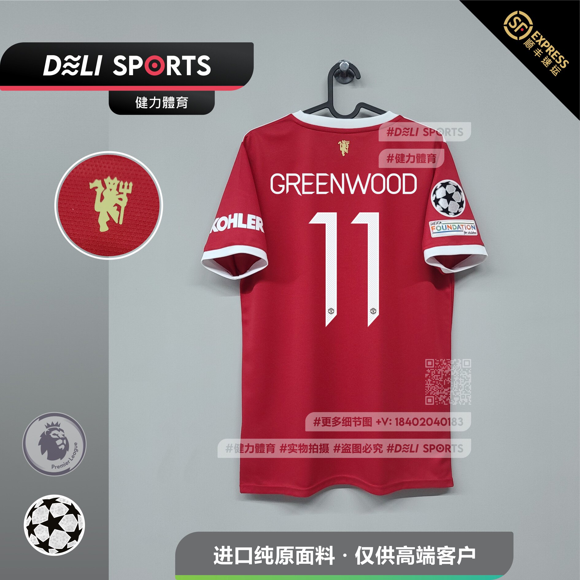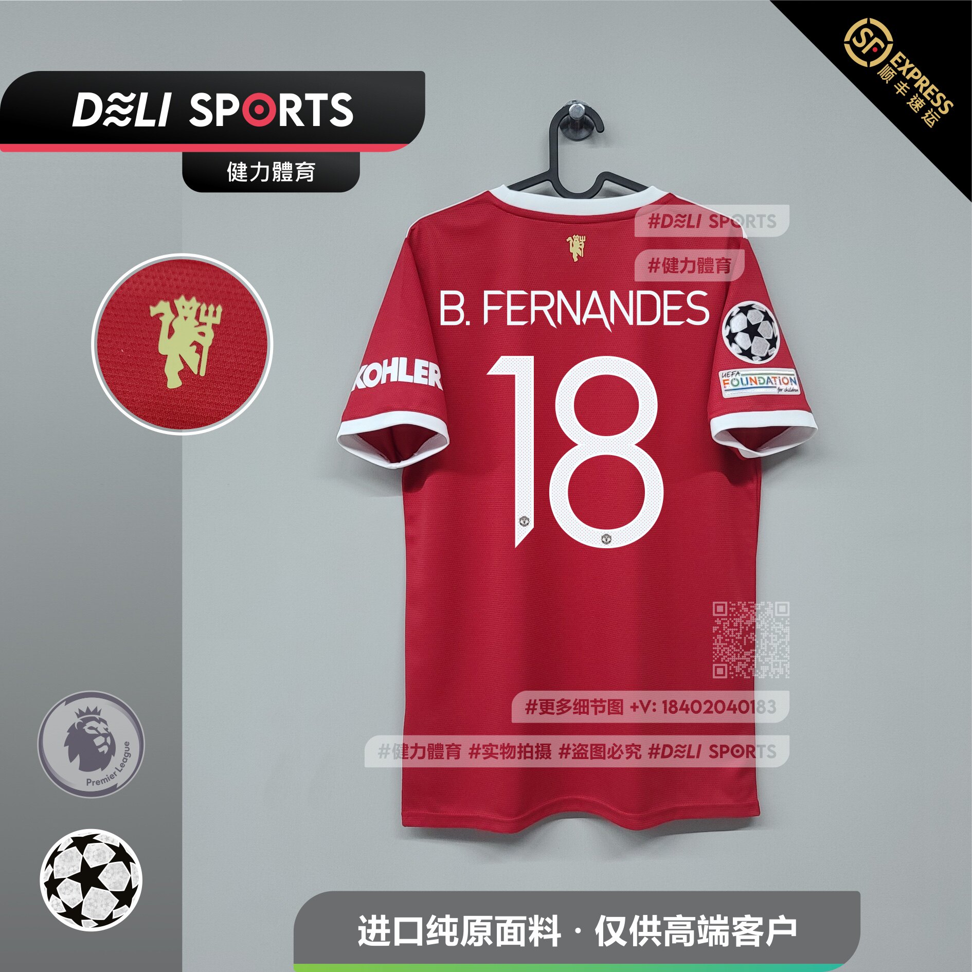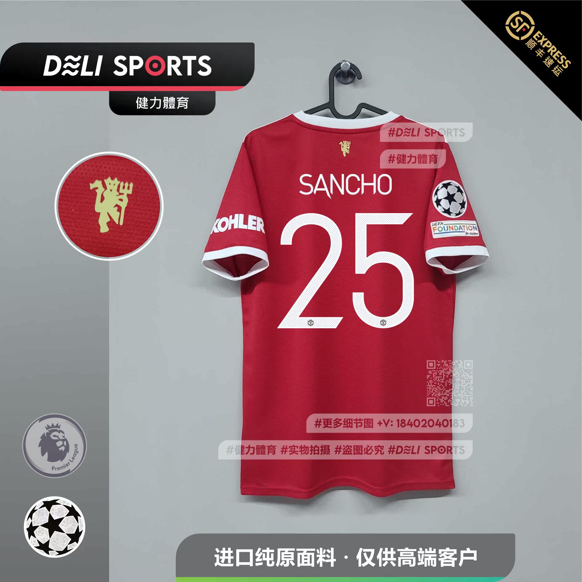 Manchester United home Champions League New 21 22 season adult men's short sleeve football uniform Fans version Sancho B Ferro