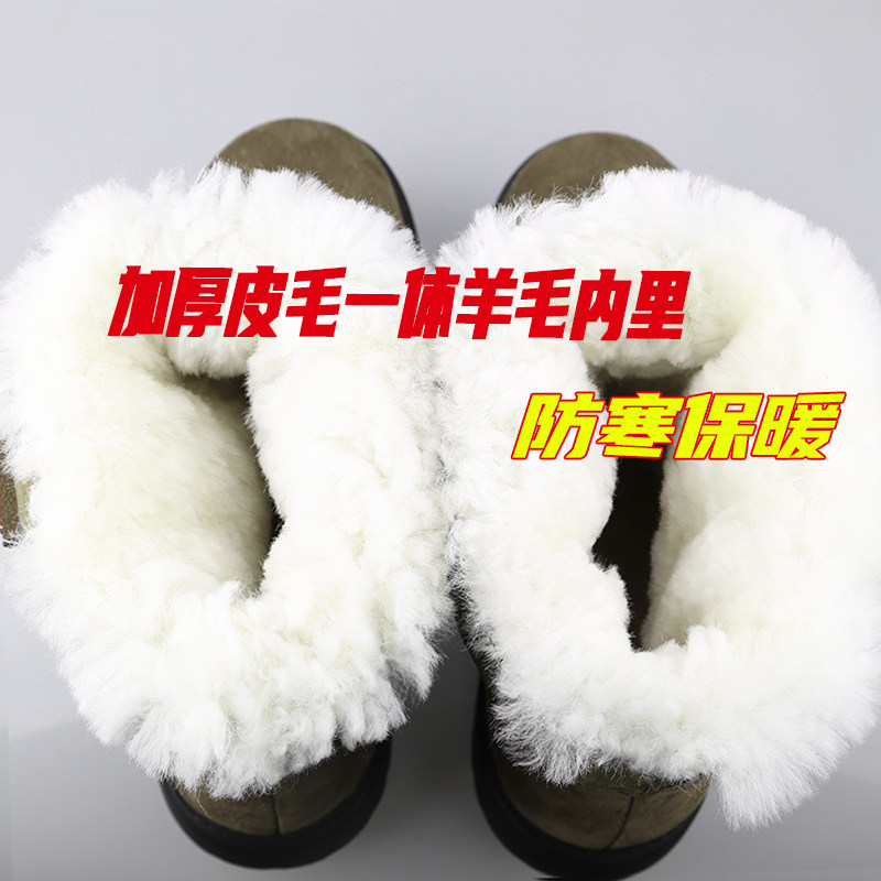 Snowy boots male fur integrated northeast winter turd leather shoes anti-cold boots genuine leather thickened wool boots Mongolian boots