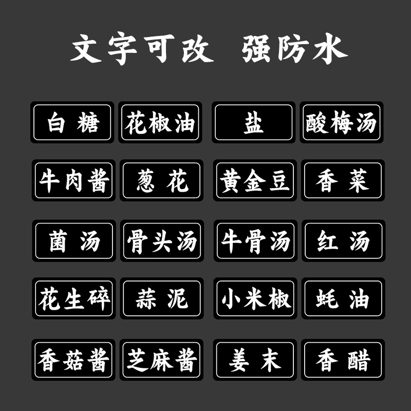 Large-character version strong waterproof vinegar soy sauce sticker oil salt sugar PVC oil-proof paste firm seasoning paper self-adhesive label